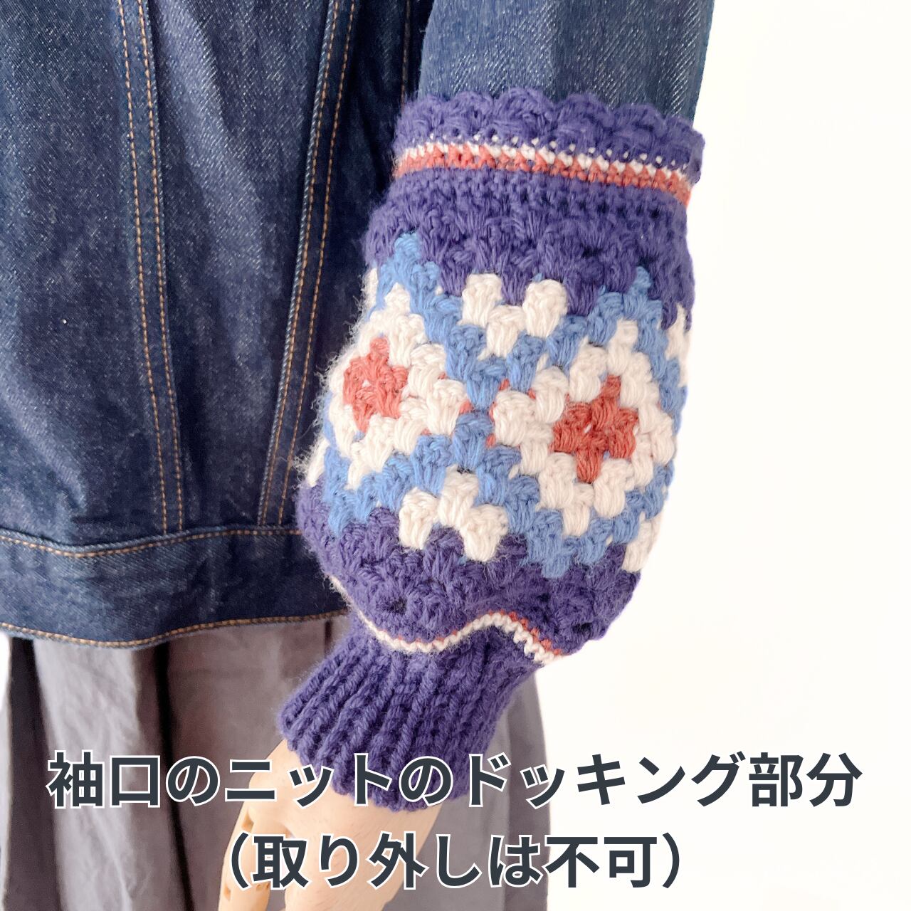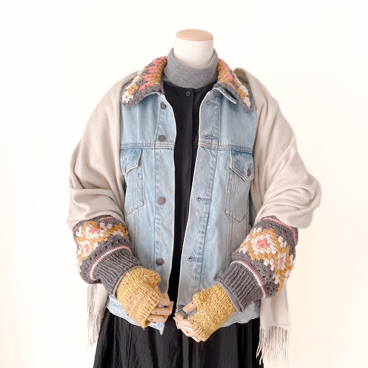 レトロな雰囲気のかぎ針編みのパーツを合わせた、キャッチーなデニムジャケットです!