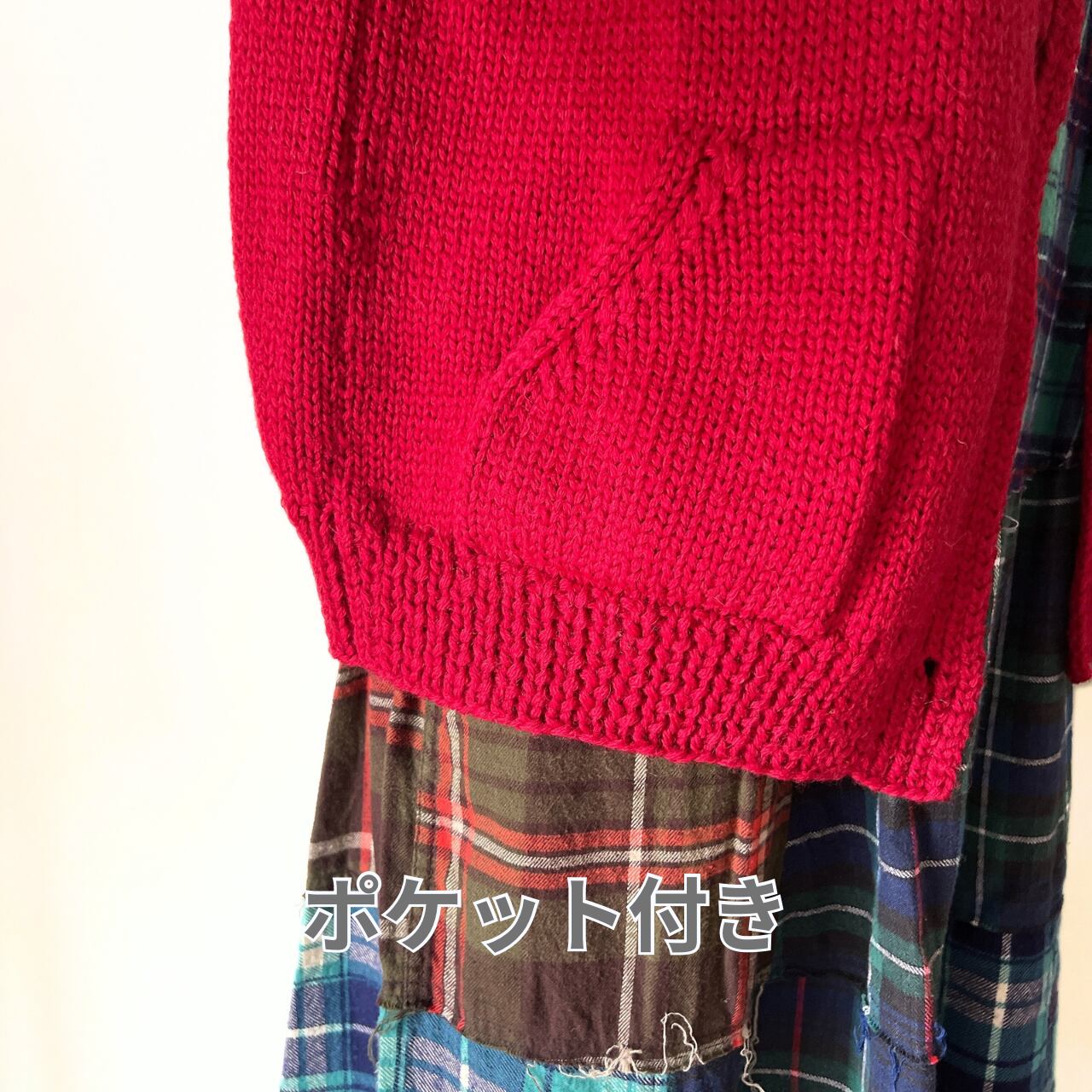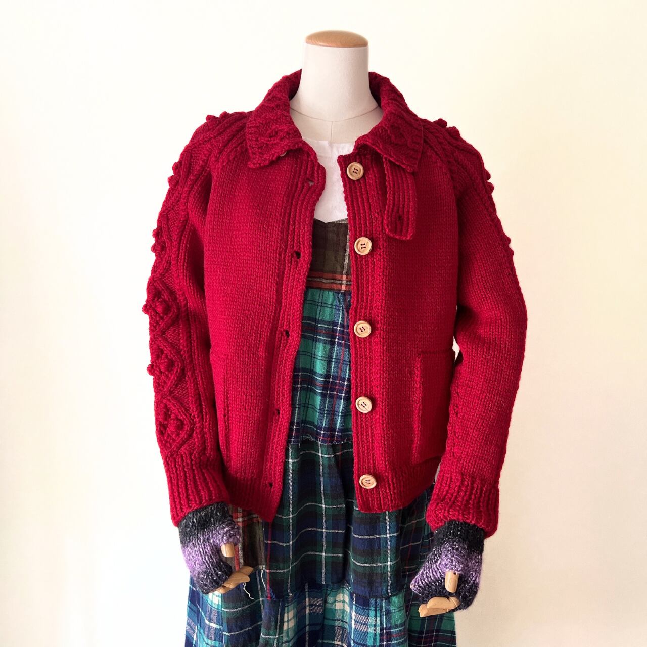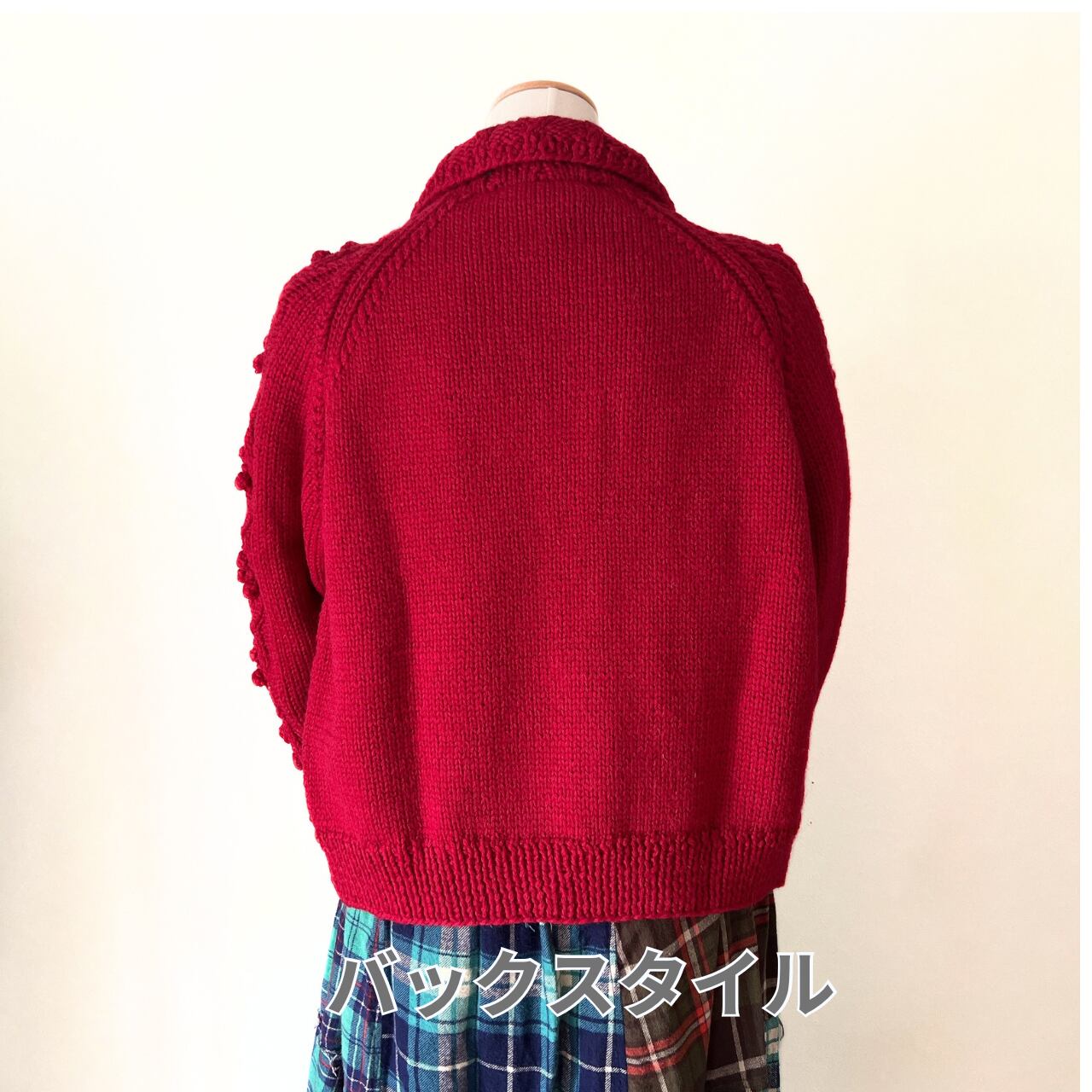 カラーはレッド。スペシャルな気持ちのあがるカラーです。袖付はラグラン袖でとても着やすいです。